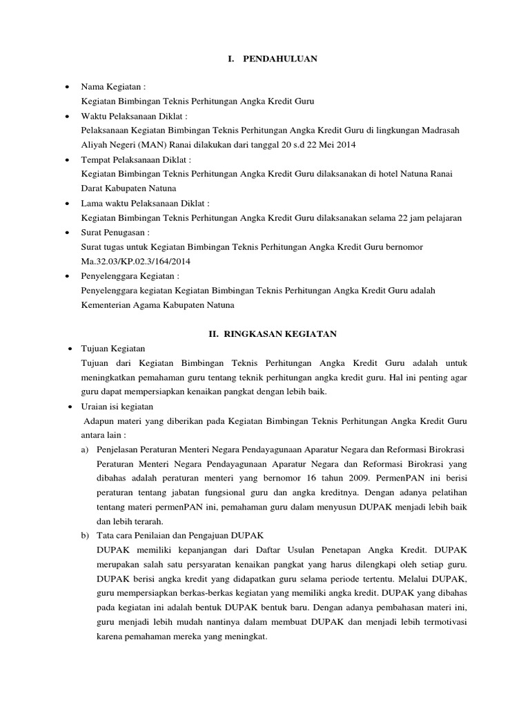 Laporan Kegiatan Pelatihan Angka Kredit Pdf