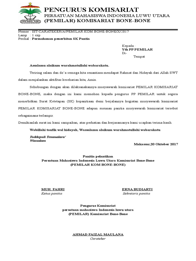 Contoh Surat Pelantikan Pengurus Organisasi Letter 7saudara Com