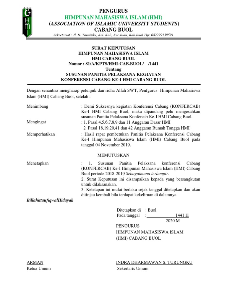 . Terimakasih kepada seluruh panitia yang telah berpartisipasi untuk menyukseskan pelantikan pengurus HMI Komisariat Syariah yang baru terimakasih saya ucapkan kepada pengurus HMI Cabang Sambas yang telah memberikan masukan dalam pelaksanaan ini serta kepada alumni HMI-KAHMI yang telah mensupport kegiatan ini sehingga terlaksana dengan. Contoh teks sambutan tuan rumah dengan kata-kata yang. Contoh Surat Permohonan untuk Izin Kerjasama Barang Dana dan Lain Sebagainya bisa digunakan sebagai Surat pendukung dalam kegiatan memohon kepada pihak terkait.
